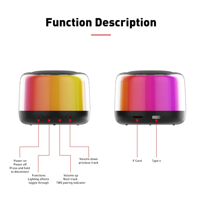 BTS02 Bluetooth Speaker with RGB Light, TF Card & Portable Mini Design, Strong Bass for Outdoor