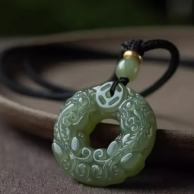 Natural Chinese Chalcedony Hand Carved Jade Pendant Necklace Fashion Lovers Jewelry Carved Agate Black Buckle Pendant