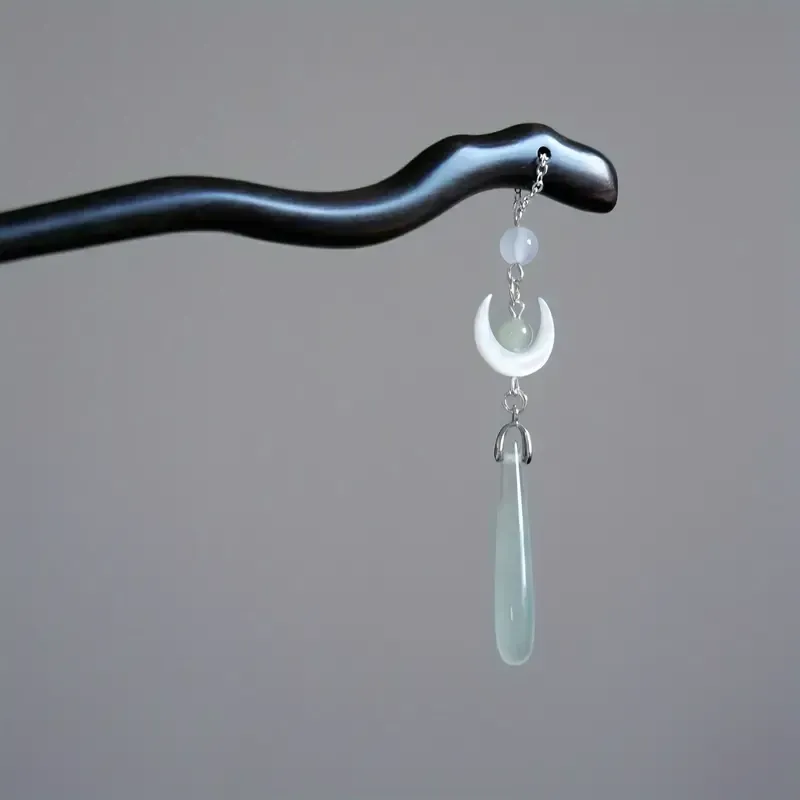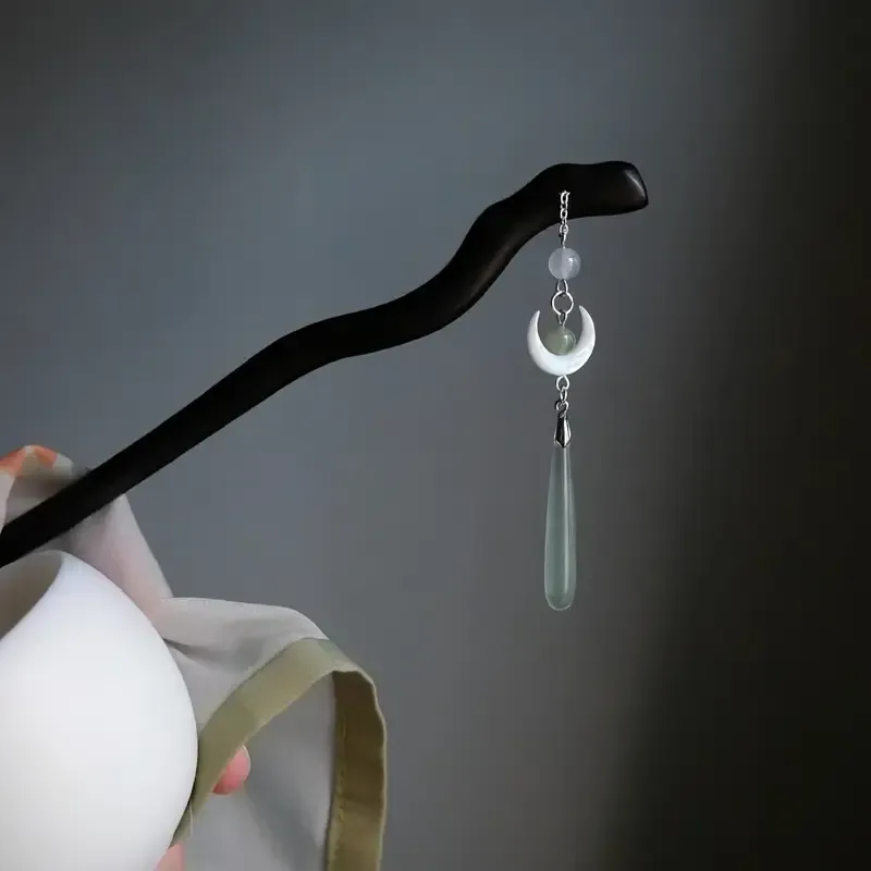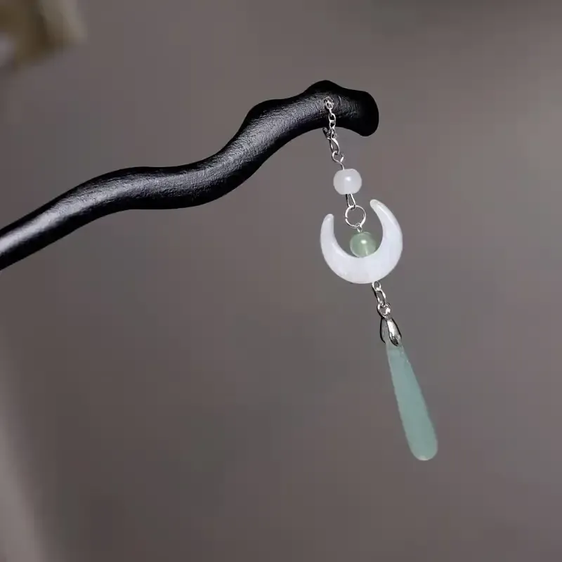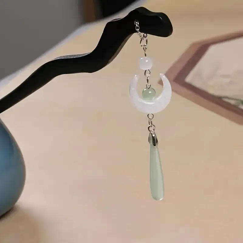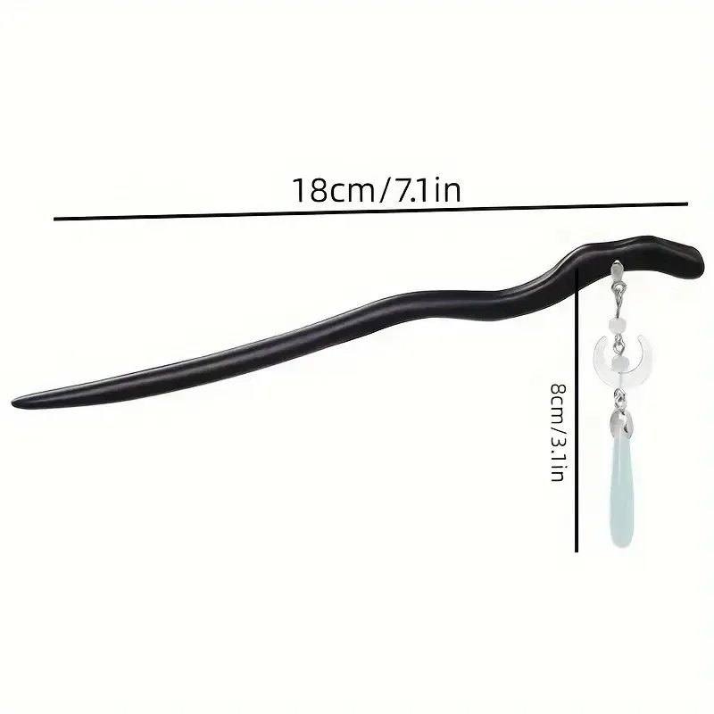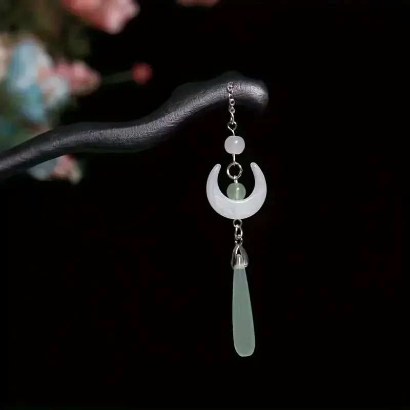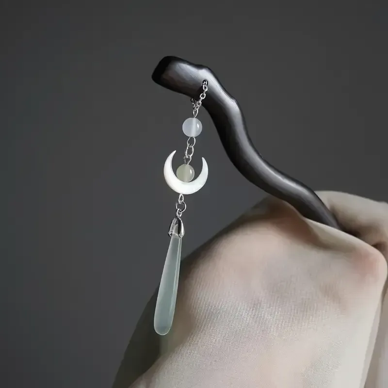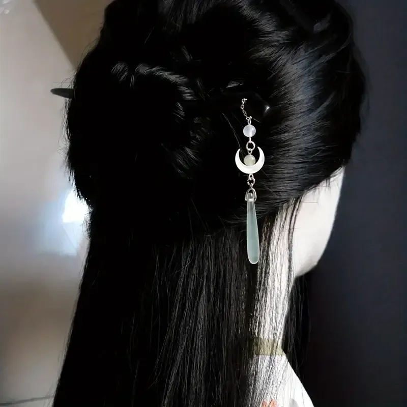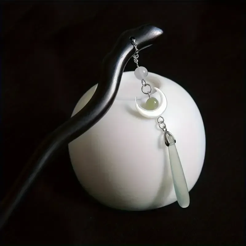 Vintage Chinese Style Wooden Hair Sticks for Women Girls Moon Tassel Hairpin Hair Clip Hanfu Headwear Jewelry Hair Accessories